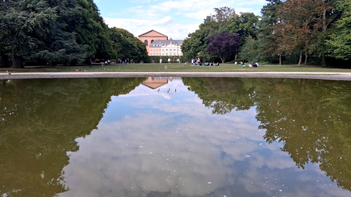 Palasgarten nennen die Trierer und Triererinnen die grüne Lunge ihrer Altstadt. Viele Stadtführungen enden dort, Jogger drehen ihre Runden auf den schnurgeraden Schotterwegen. Bei schönem Wetter treffen sich dort Einheimische, Touristen und gelegentlich verirrte Passanten, die eigentlich auf dem Weg zum Bahnhof waren, sich aber von der Opernkulisse zum Bleiben haben verführen lassen.
